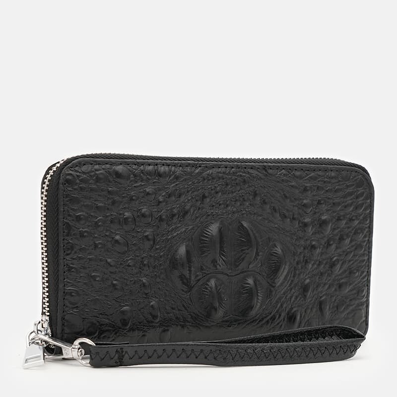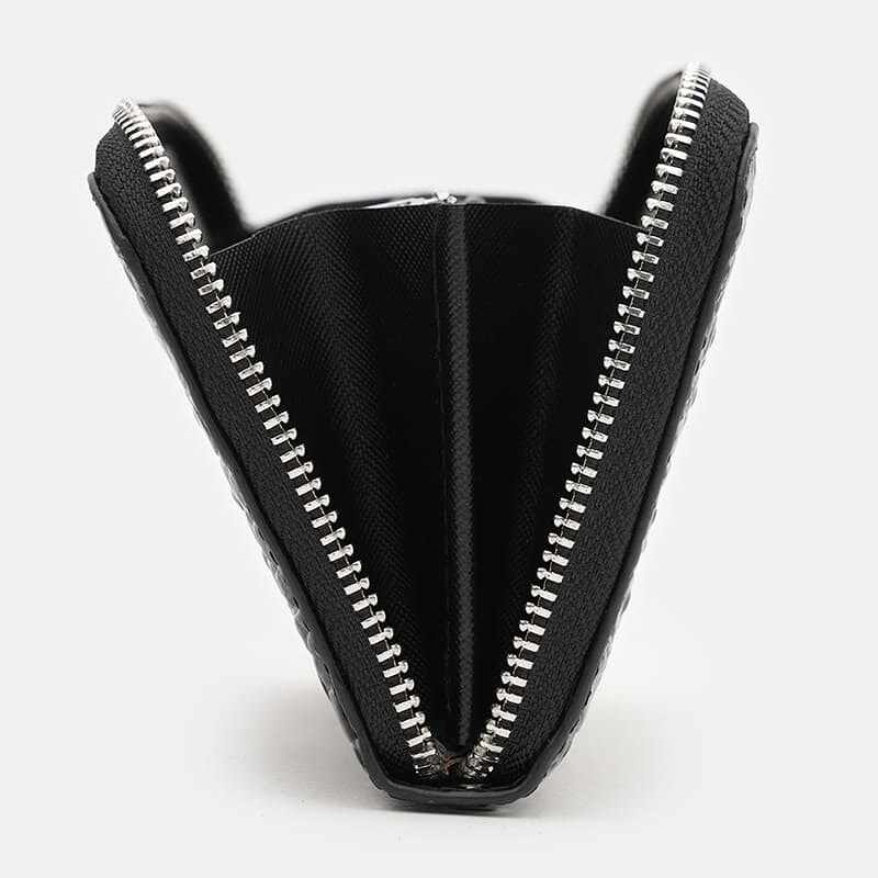 Жіночий шкіряний гаманець закривається на блискавку. Має 1 головне відділення. Усередині є 2 відділення під купюри, 12 відділів під карти та 1 монетниця на блискавці. Підкладка-текстиль. У комплекті є ручка, що знімається.