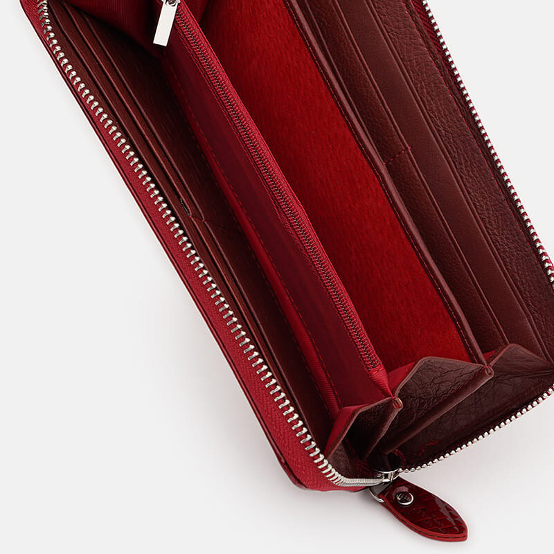 Цей жіночий гаманець із натуральної шкіри – втілення елегантності та зручності. Закривається на блискавку. Усередині знаходяться три відділення під купюри, 1 кишеню на блискавці, 8 відділів під карти та 2 додаткові практичні відділення. Підкладка: Текстиль.