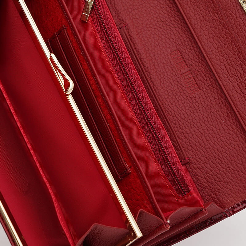 Ця модель гаманця радуватиме свою господиню практичністю, зручністю та красою. Гаманець закривається на замок, має 3 відділення під купюри, 1 кишеню на блискавці, 6 відділів під карти, 1 монетниця. Підкладка: Текстиль.