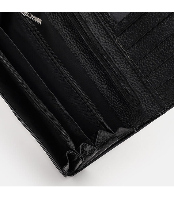 Цей жіночий гаманець – втілення краси та практичності. Закривається кнопку. Усередині знаходяться 4 відділення під купюри, 1 кишеня на блискавці, 9 відділів під карти та 1 додаткове відділення. Підкладка: Текстиль.