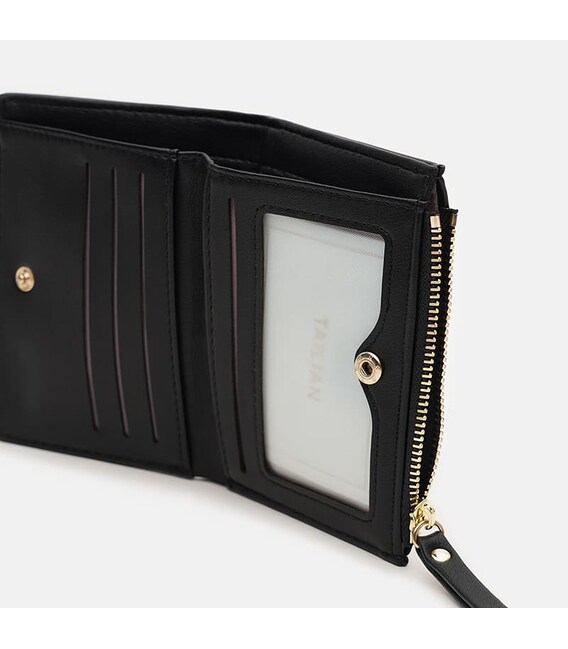 Стильний та компактний жіночий гаманець. Функціонал: 4 слоти для карт, 2 додаткові невеликі кишені, монетниця та основне відділення для купюр. Гаманець надійно закривається кнопку.