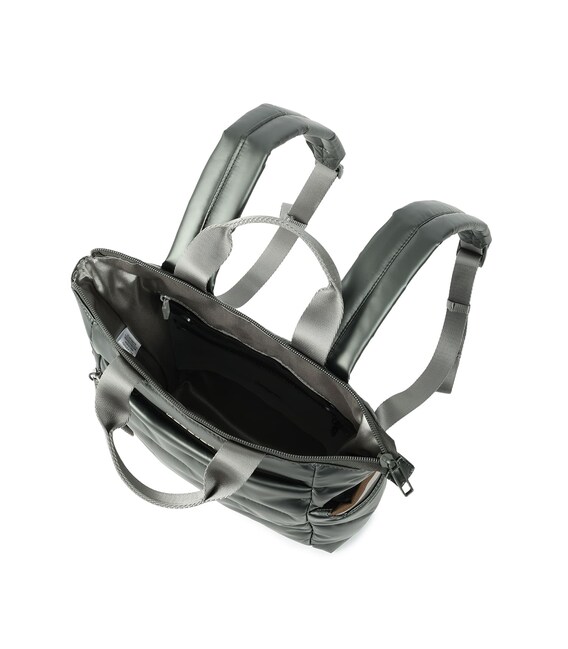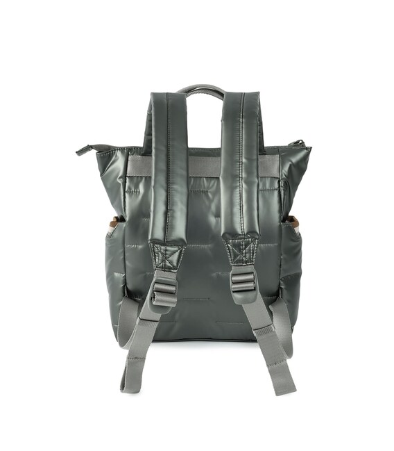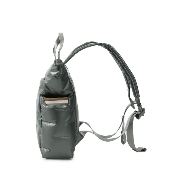 Місткий, дутий рюкзак-ідеальний супутник на кожен день. Оснащений великим основним відділенням з внутрішніми кишенями і знімною косметичкою. Із зовнішнього боку розташована кишеня на блискавці, також є бічні кишені для парасольки або пляшки з карабіном для ключів. Виконаний з щільного 100% polyester.
