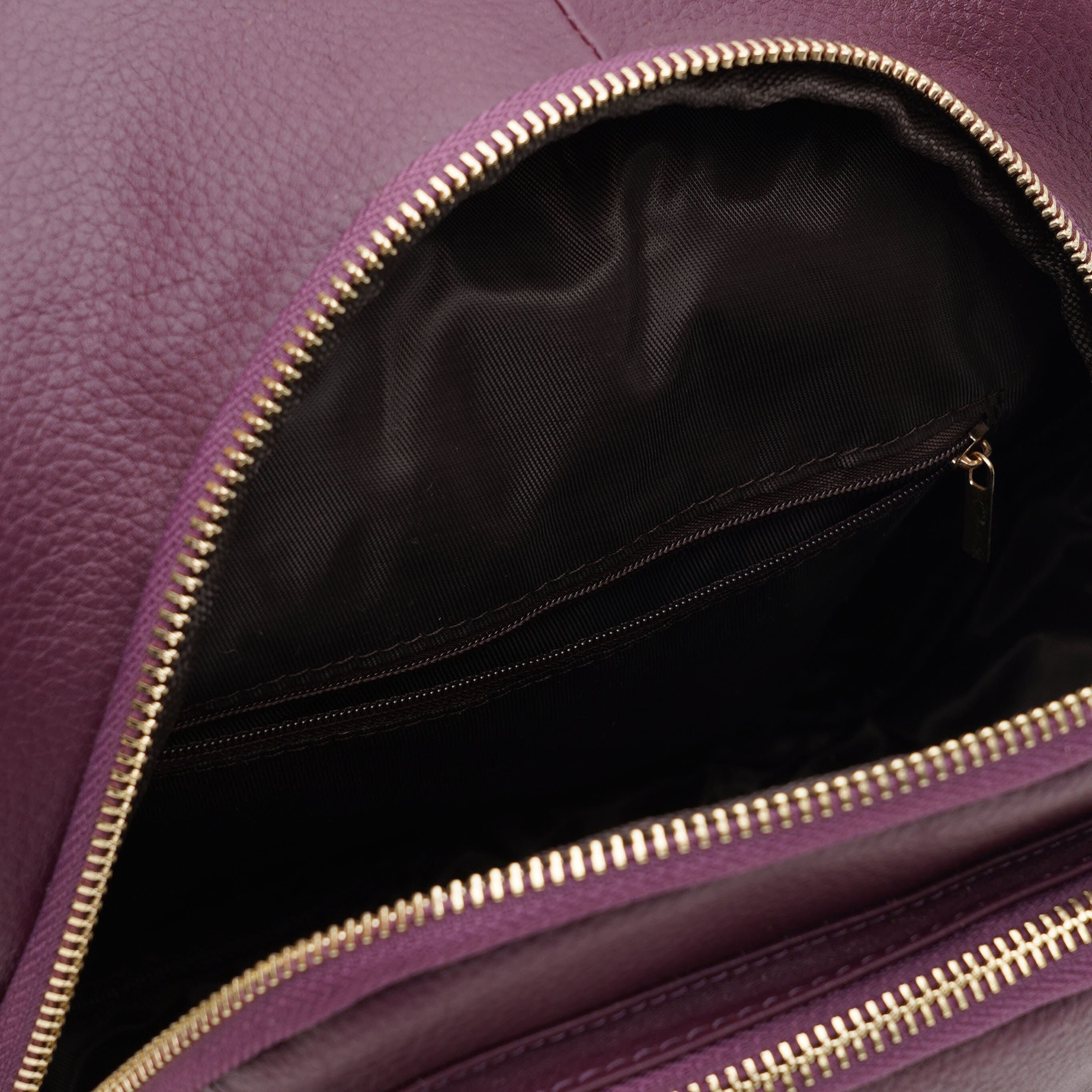 Сумка-рюкзак має одне основне відділення на блискавці. Всередині три кишені для дрібниць та телефону. З лицьового боку: дві кишені на блискавці, з тильного- одна горизонтальна кишеня на блискавці. Підкладка: Текстиль. Колір фурнітури-золото. Фурнітура: метал. Лямки регулюються за довжиною.