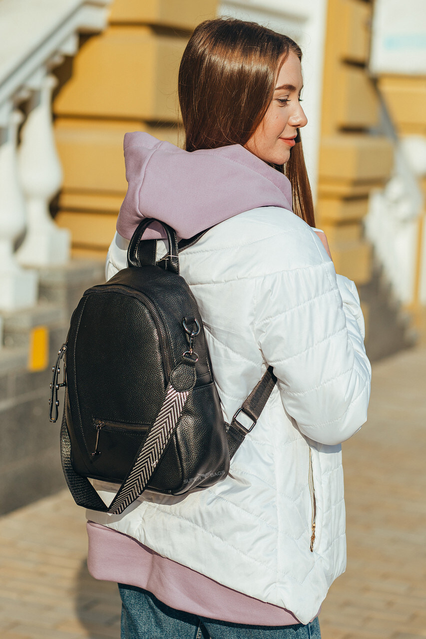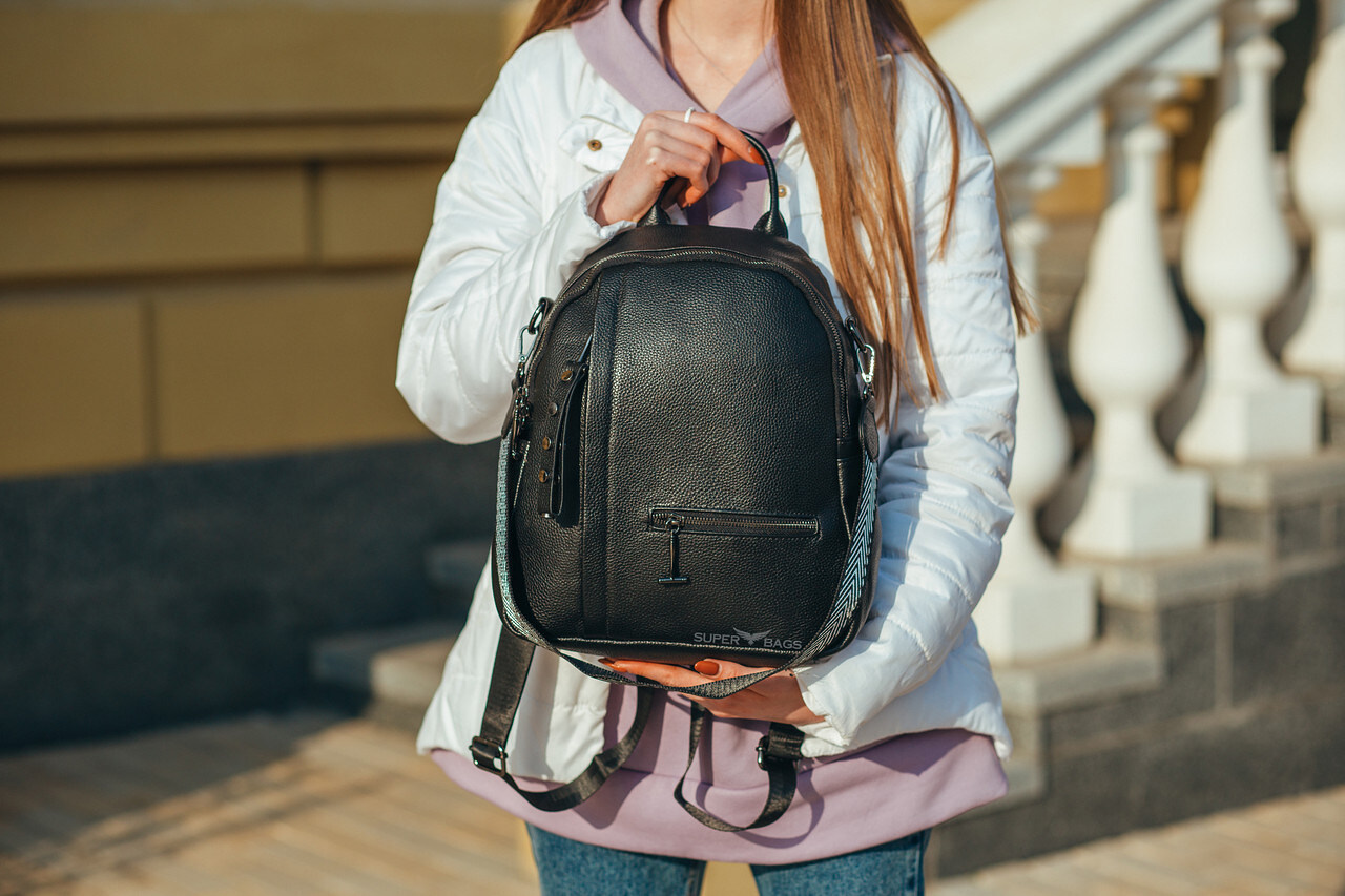 Якісний шкіряний міський рюкзак у чорному кольорі.