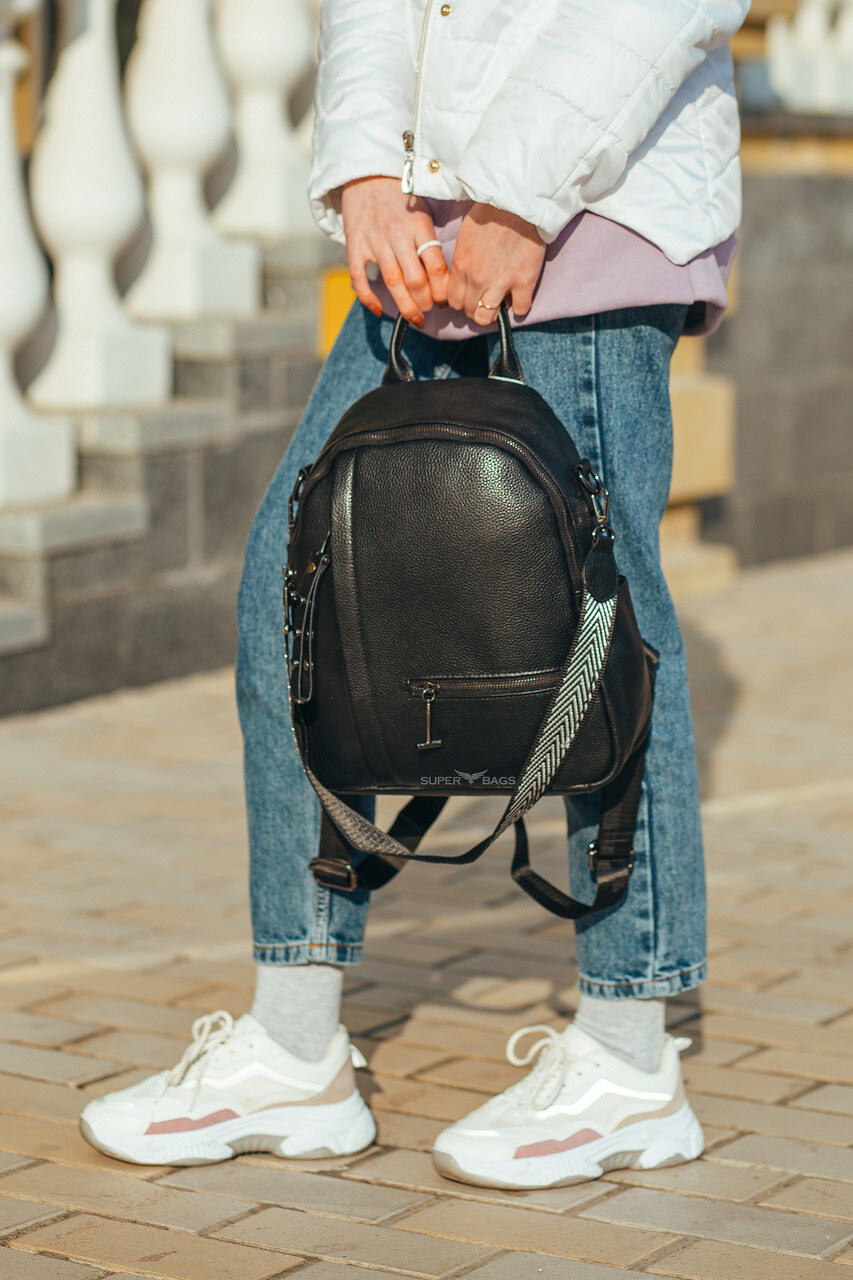 Шкіряний жіночий чорний міський рюкзак 73590