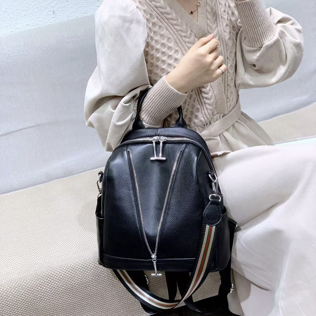 Стильний аксесуар для дівчат і жінок, необхідний для повсякденного життя, яка стає динамічнішою, активнішою та швидкіснішою. У такий практичний і функціональний рюкзак дасть змогу розмістити багато різноманітних речей. Виготовлений із натуральної шкіри, у практичному чорному кольорі, який буде доречний у будь-якій колірній гамі гардероба. Вміщує документи формату А5.