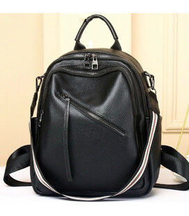 Стильний аксесуар для дівчат і жінок, необхідний для повсякденного життя, яка стає динамічнішою, активнішою та швидкіснішою. У такий практичний і функціональний рюкзак дасть змогу розмістити багато різноманітних речей. Виготовлений із натуральної шкіри, у практичному чорному кольорі, який буде доречний у будь-якій колірній гамі гардероба. Вміщує документи формату А5.