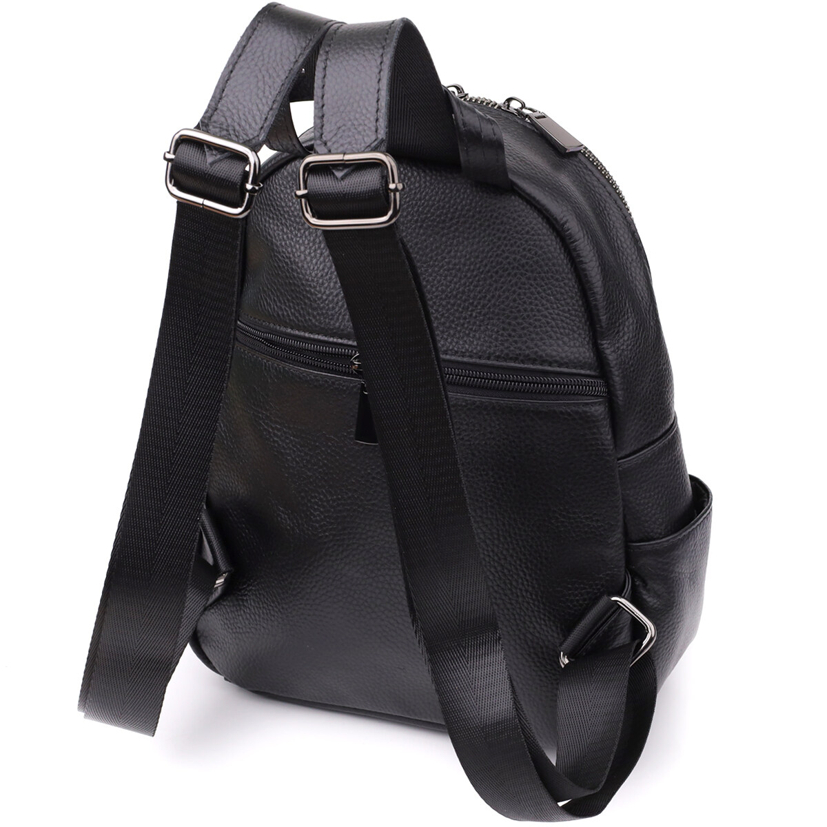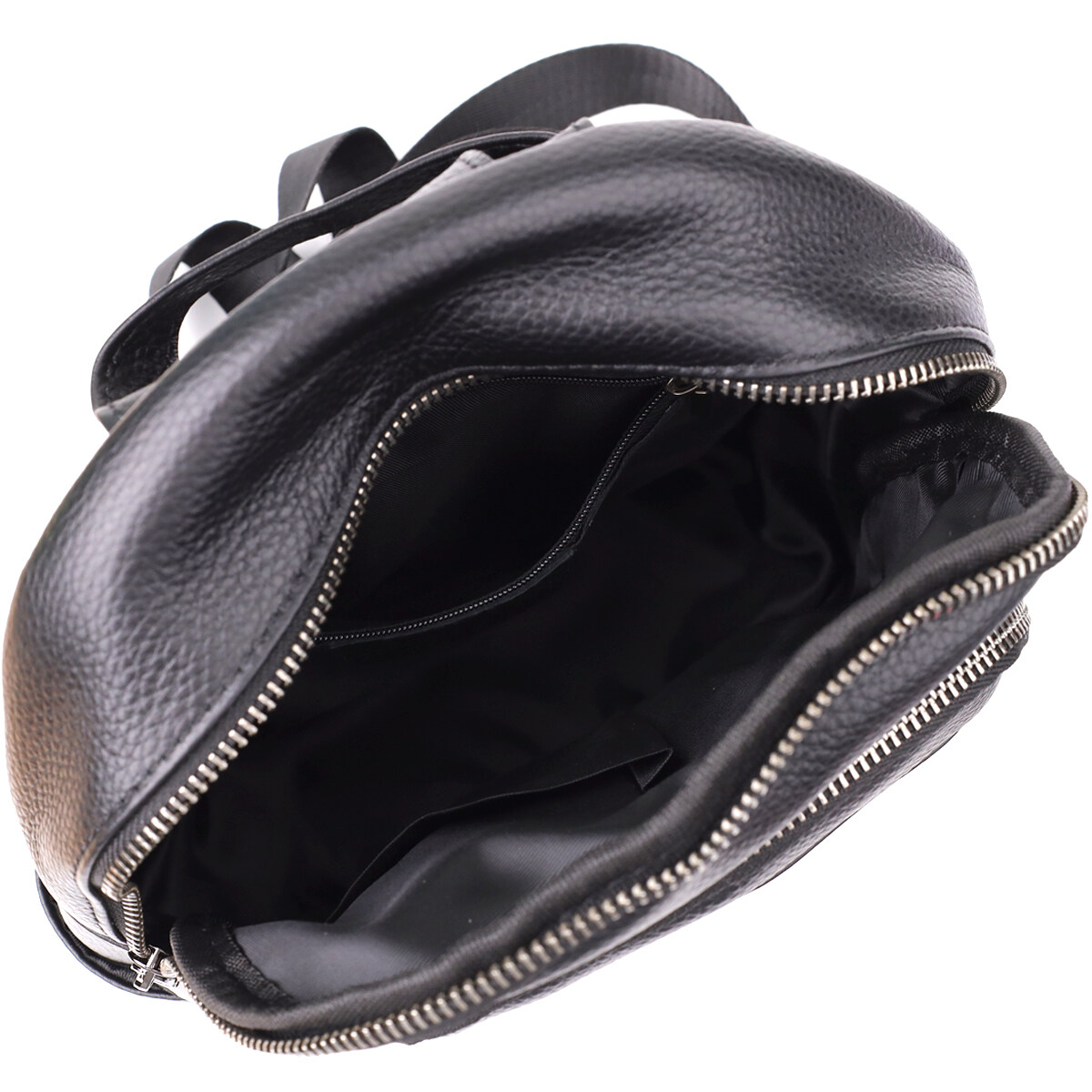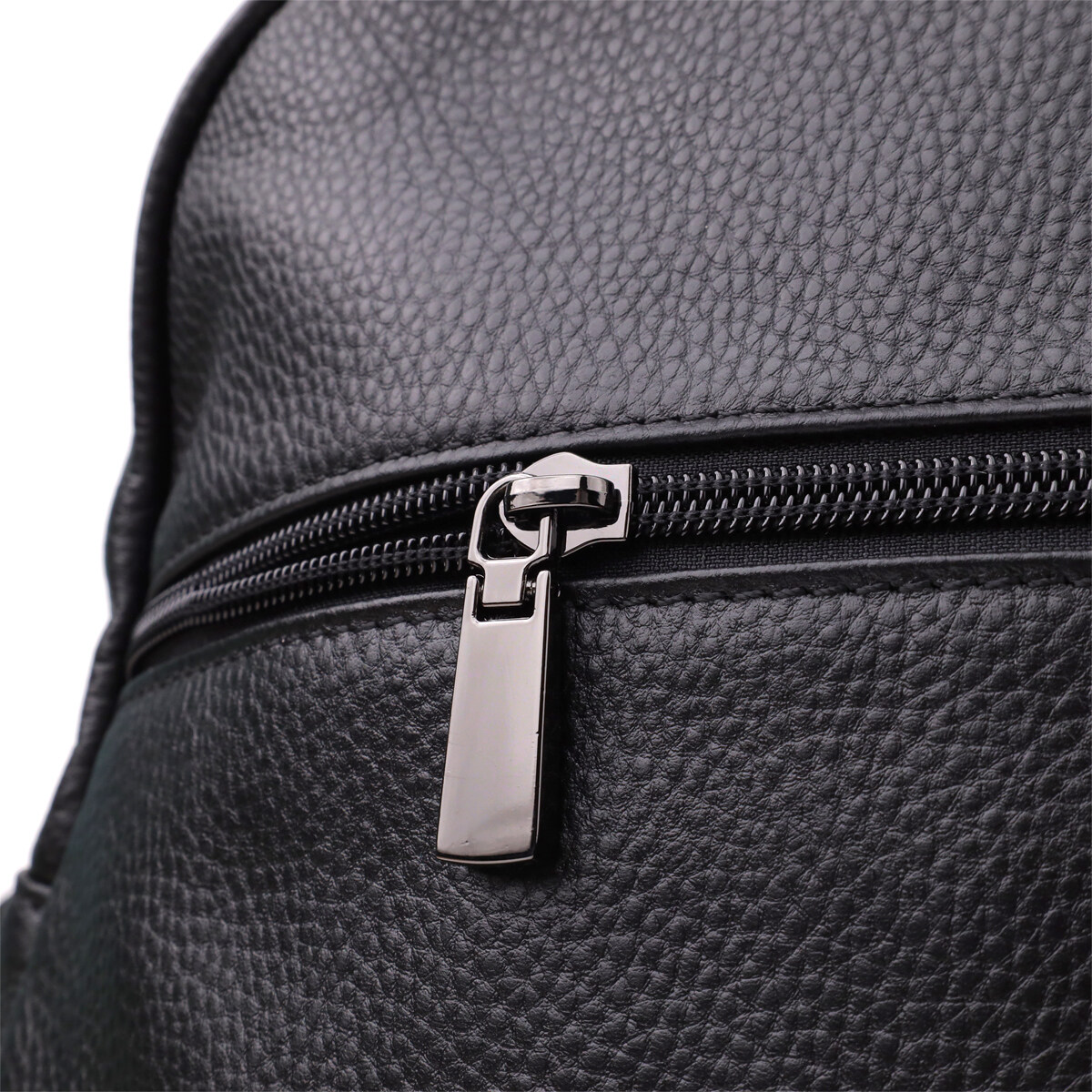 Жіночий шкіряний рюкзак виконаний у лаконічному дизайні та відмінно підходить для повсякденного використання. Модель оснащена одним основним відділенням на блискавці, всередині якої розташовані дві кишені: одна на блискавці та одна відкритого типу — для зручної організації речей.