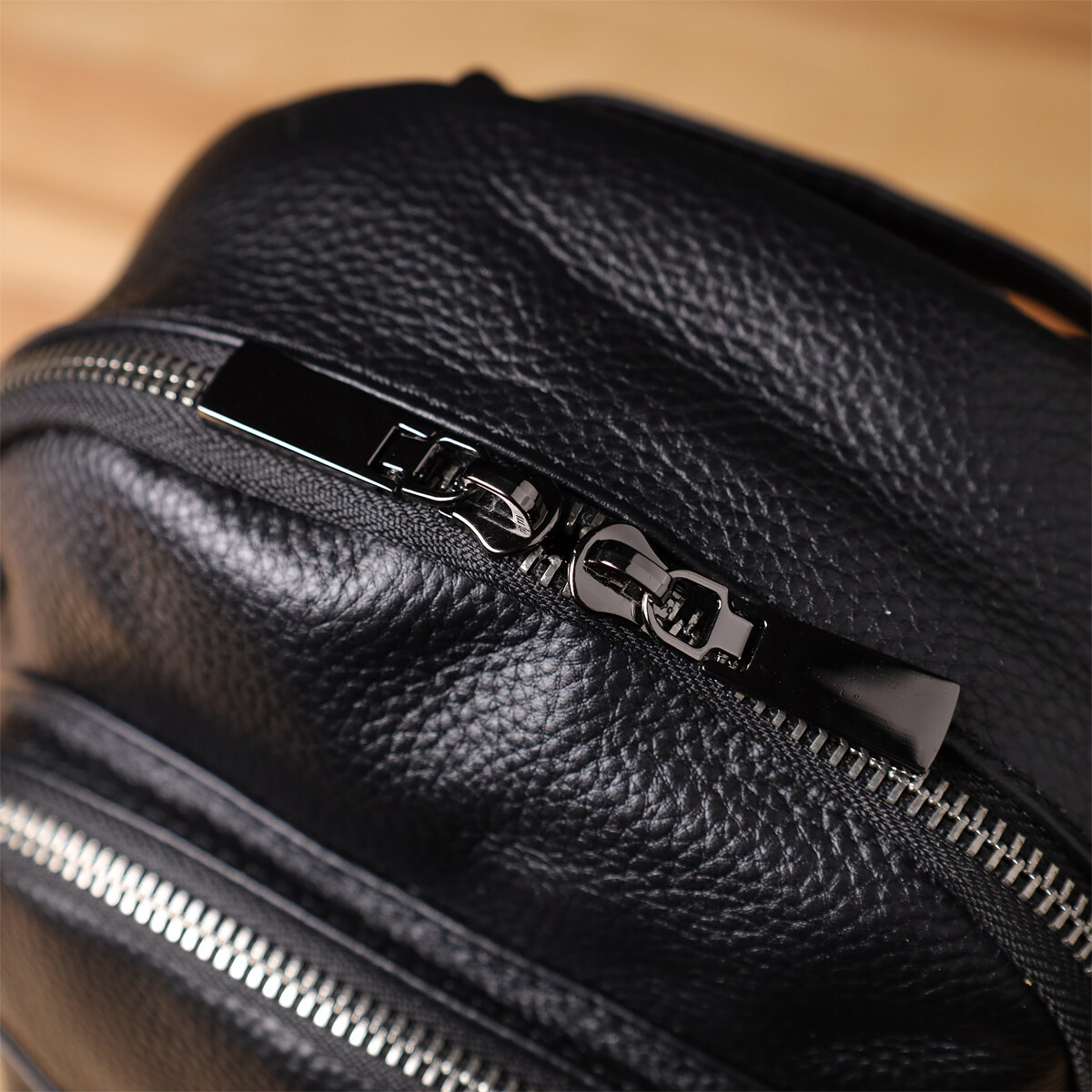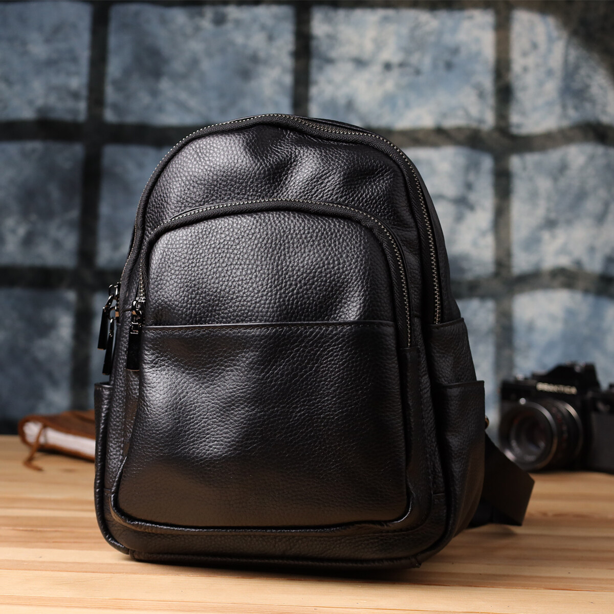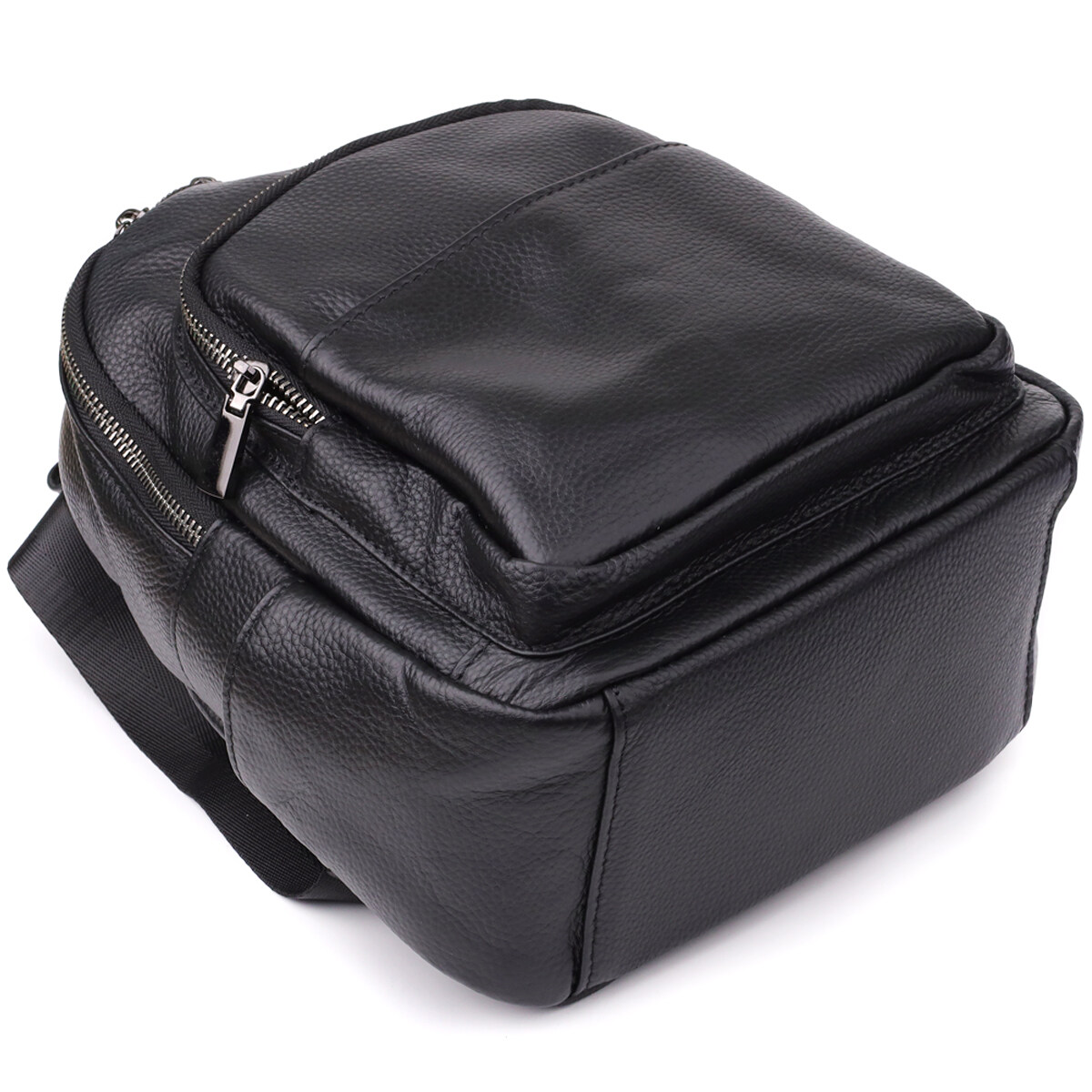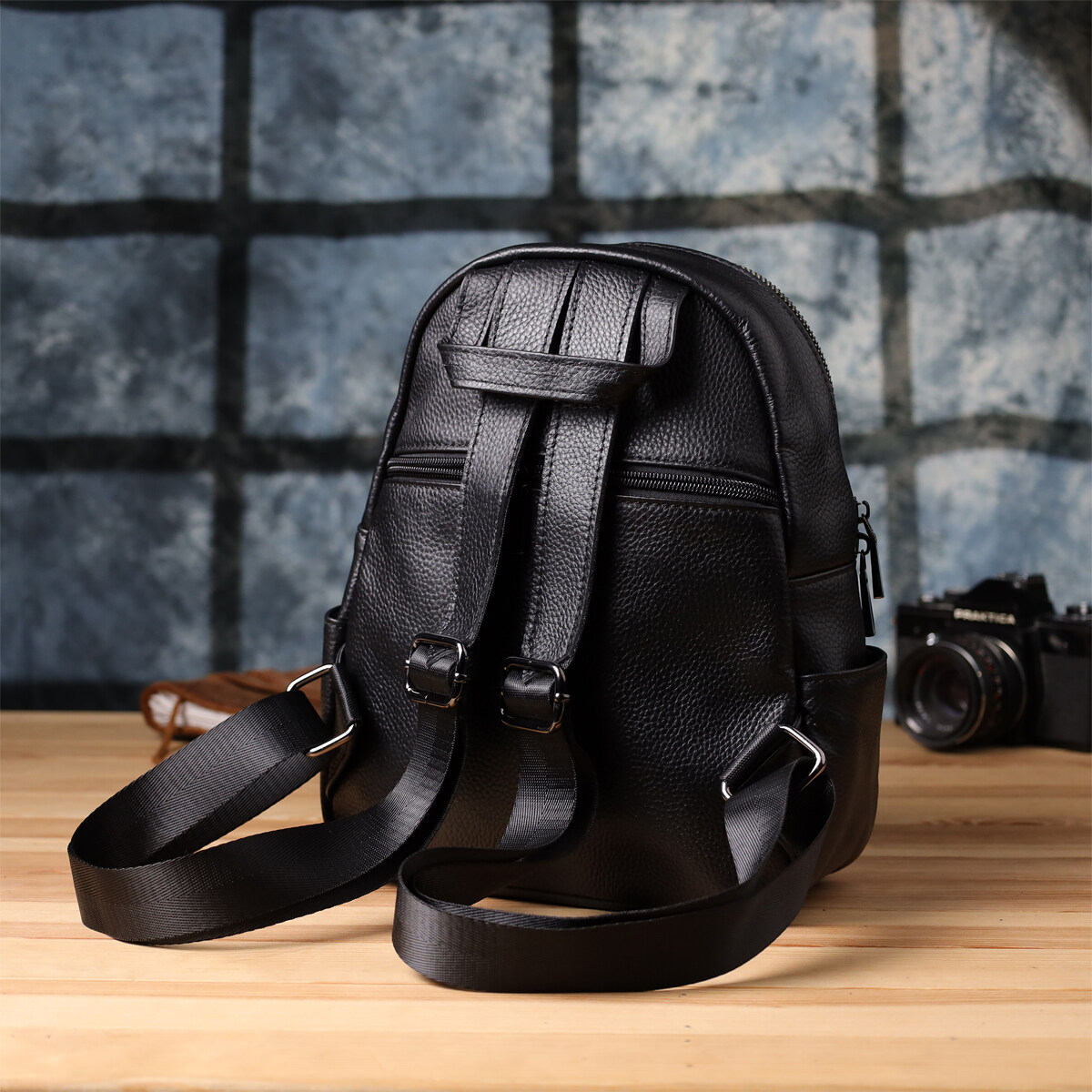 Жіночий шкіряний рюкзак виконаний у лаконічному дизайні та відмінно підходить для повсякденного використання. Модель оснащена одним основним відділенням на блискавці, всередині якої розташовані дві кишені: одна на блискавці та одна відкритого типу — для зручної організації речей.