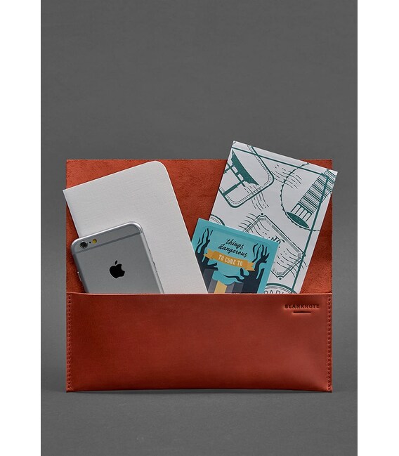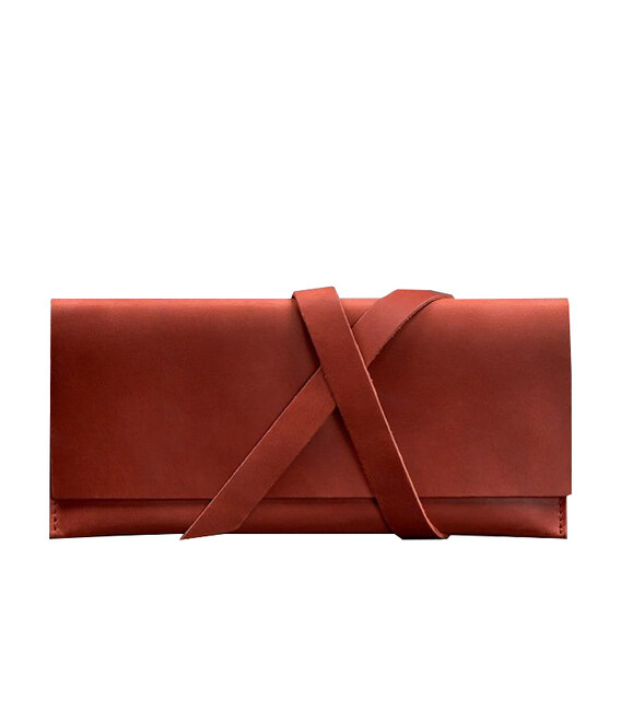 Це холдер для документів зручного розміру, в якому помістяться посадочні талони (або залізничні квитки), паспорта, гроші і маса інших корисних речей, які повинні бути завжди під рукою в подорож. Холдер зроблений повністю вручну з цільного шматка дуже щільної (2 мм) натуральної шкіри. Закривається він на шкіряний хлястик, який кріпиться двома люверсами, за сумісництвом формують держатель для канцелярського приладдя.