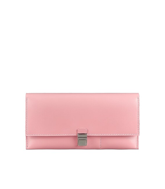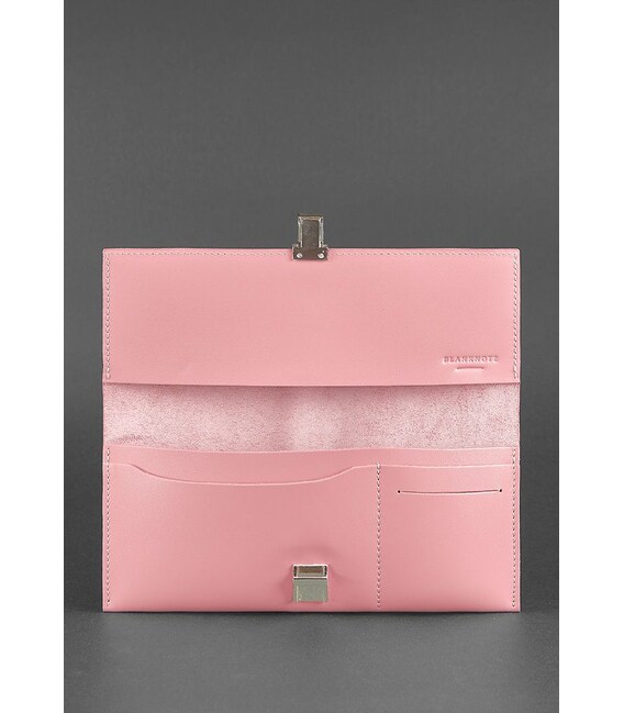 Виконана модель з натуральної шкіри дуже ніжного рожево-персикового кольору. Всередині багато відділень і кишень - кожна річ матиме своє місце. Закривається холдер на гарний портфельний замок.