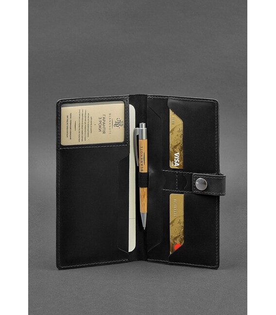 Усередині тревел-кейса є п'ять відділень для пластикових карт, одне відділення для паспорта, два великих відділення для купюр і блокнота. На задній стінці аксесуара розташовується додаткова кишеня на блискавці, яку можна використовувати для різних дрібниць.
